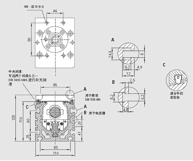 部件說明:直線運動模塊,帶有防護帶,配有兩個滑塊