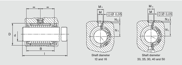 1)不帶軸抗扭滾珠導(dǎo)套部件號(hào):軸徑12和16:R0720 0..00    軸徑20至50:R0720 3..00